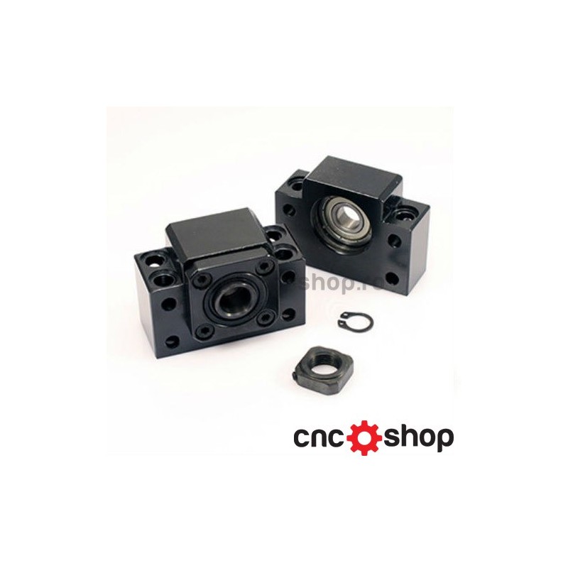 Suporti de capat (lagar) BK10/BF10, pentru suruburile cu bile (SFU1204), faciliteaza fixarea ferma si precisa si datorita rulmentilor dublu radial axiali, elimina orice joc si transmite miscarea usor. Realizati din otel, culoare neagra, se livreaza la set, includ piulita cu pas marunt RN de strangere la BK si inelul de siguranta pt. fixare la BF.