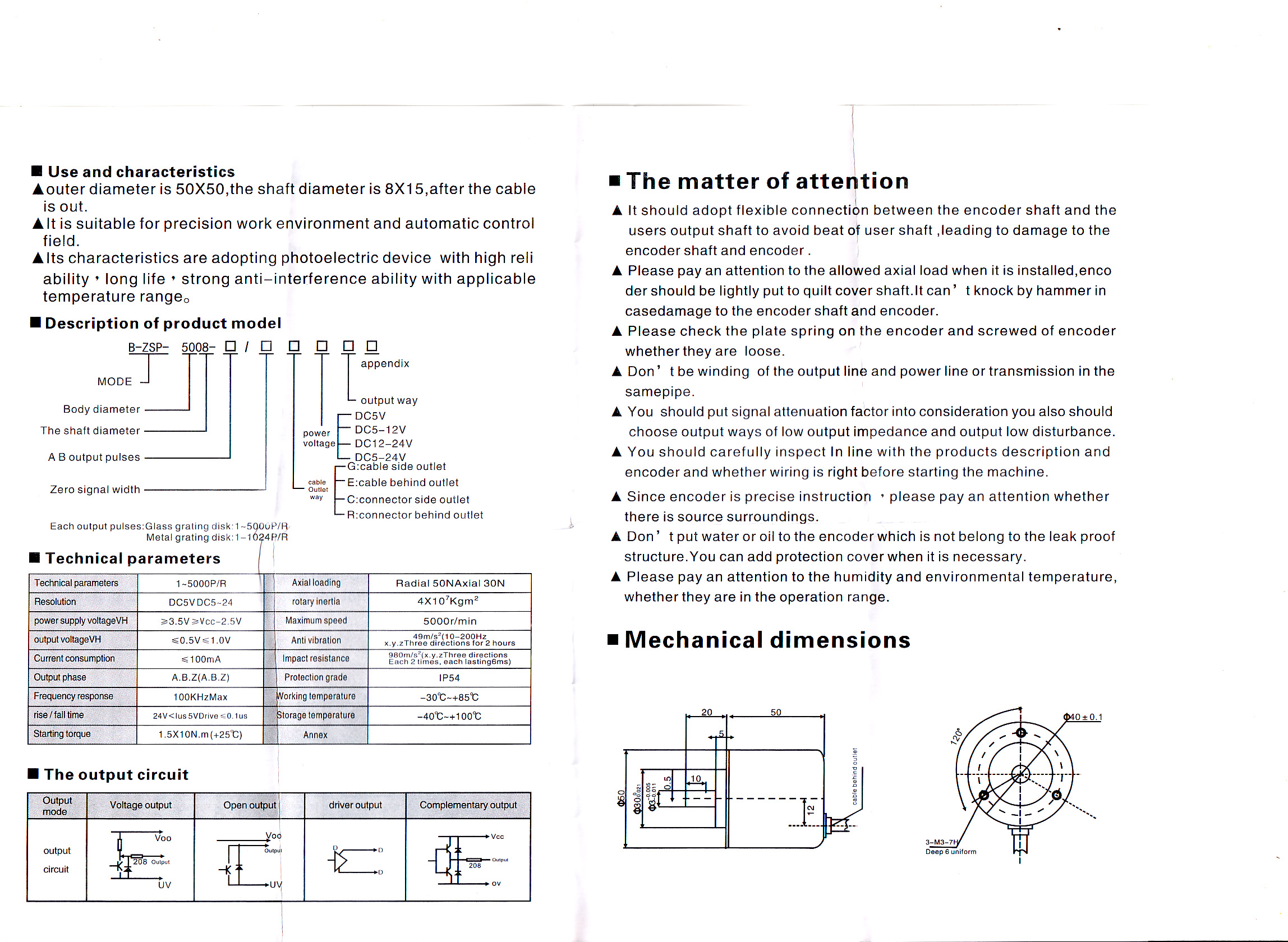 Encoder rotativ incremental, 500ppr, miscare usoar si precisa pe rulmenti, cablu 2m, suport prindere, cuplaj PVC pt prindere ax. Viteza maxima 5000rpm.