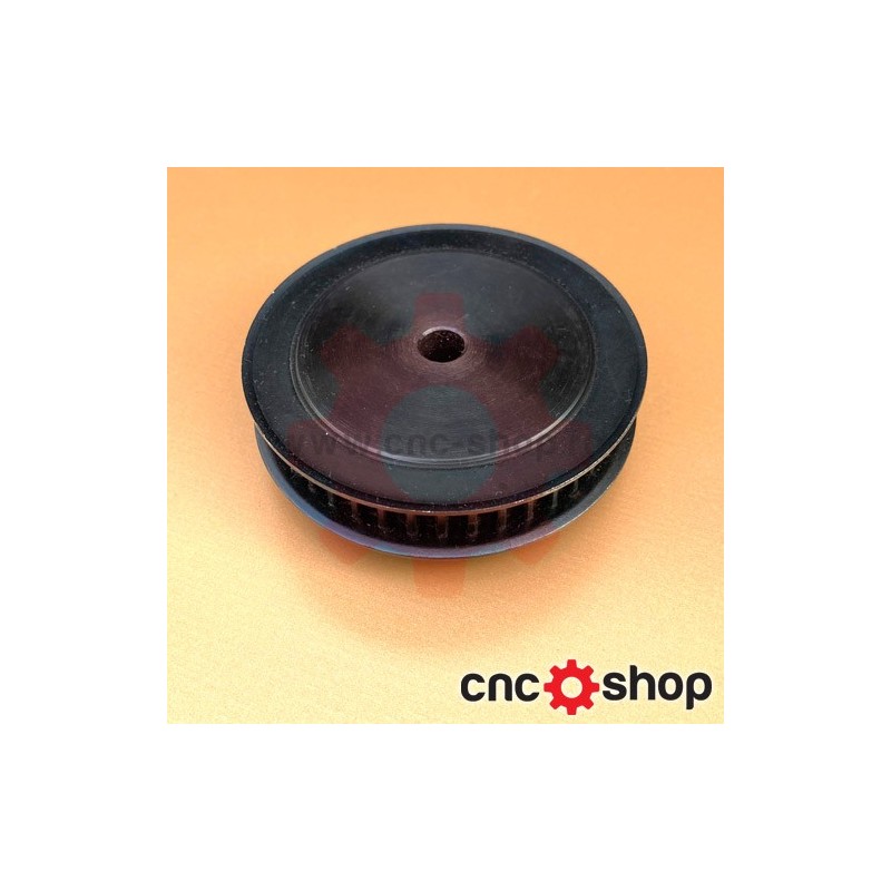 Prevazuta cu flanse, asigura stabilitatea curelei chiar si la viteze mari. Alezajul initial este la 8mm dar poate fi marit prin strunjire. De asemenea, fixarea rotii pe ax se poate realiza si cu canal de pana sau stifturi de fixare.
