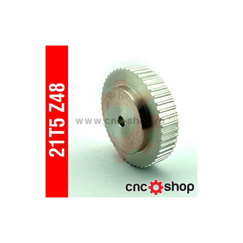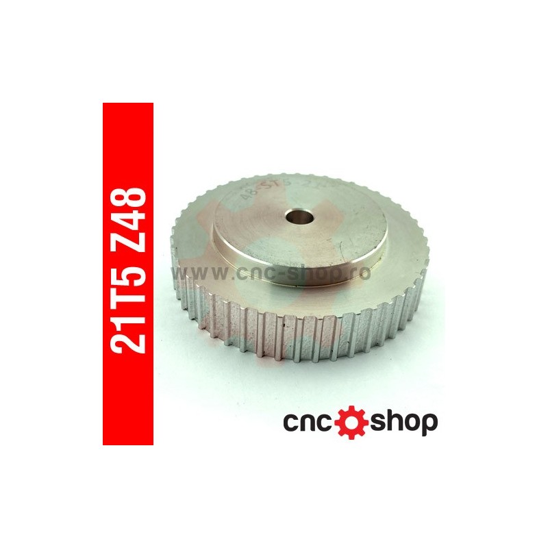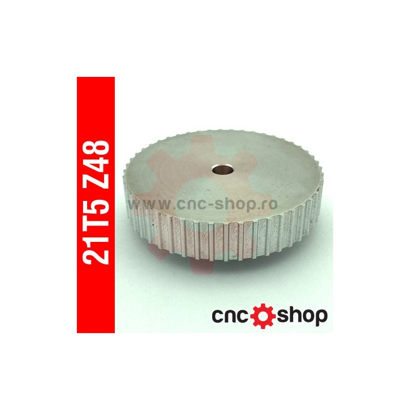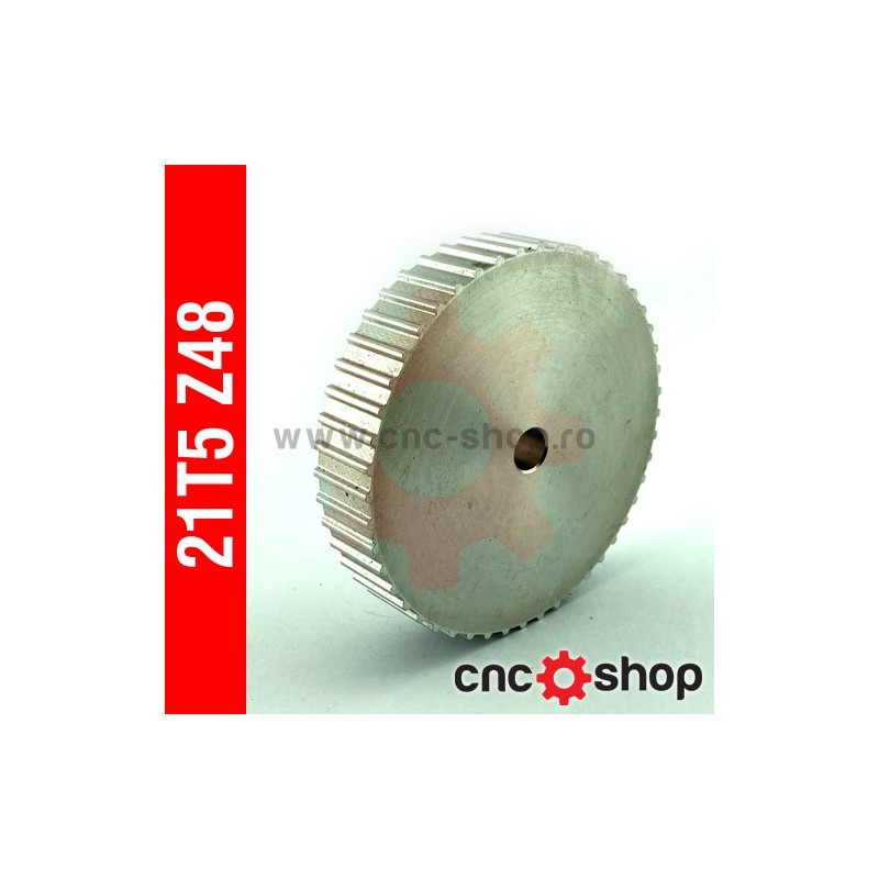 Roata dintata (sincron) T5 latime curea 10mm, pas 5mm, aluminiu 6082, 48 dinti, fara flanse.