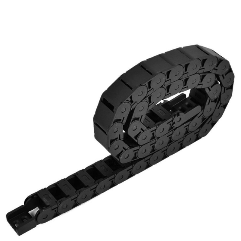 Lanțurile port-cabluri semi-închise 15x20 (drag chains / cable carriers) sunt soluția ideală pentru protejarea cablurilor și furtunurilor în aplicații industriale cu flexare continuă. Acestea mențin traseele ordonate și stabile, reduc solicitările mecanice și previn uzura cauzată de uleiuri, rășini, lichide de răcire sau vibrații. Sistemul modular permite o montare rapidă, fără scule speciale, ceea ce reduce semnificativ timpii de mentenanță. Lanțurile 15x20 sunt recomandate pentru utilaje CNC, echipamente automate, imprimante 3D industriale și sisteme robotice, oferind durabilitate crescută și funcționare sigură inclusiv în medii dificile. Inaltimea cablului pliat este de 75mm.