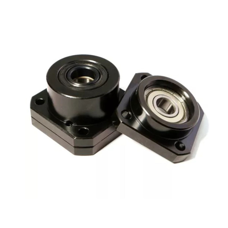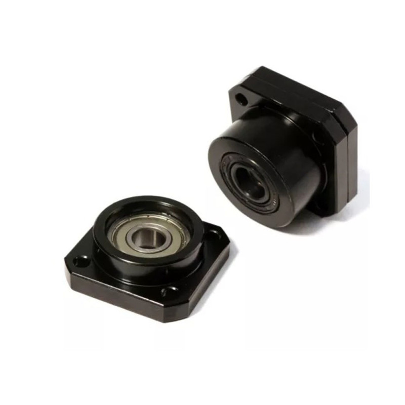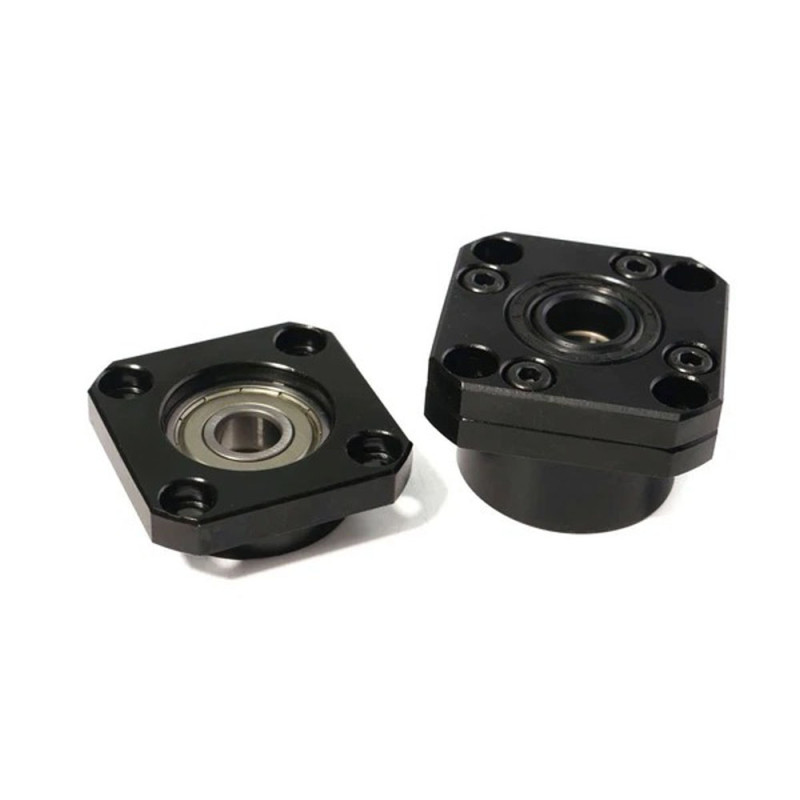 Set suporti de capat FK12-FF12 pentru suruburile cu bile 1605, bloc din otel prelucrat CNC precizie, cu rulmenti radial-axiali ce asigura o fixare ferma si precisa. Montaj in plan perpendicular cu surubul. Se poate folosi si la suruburile trapezoidale cu prelucrari la capete de 12mm respectiv 10mm. Include piulita de blocare.
